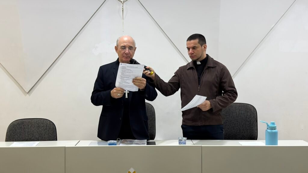 Em seguida, Dom Pedro partilhou a alegria pela celebração de Nossa Senhora Aparecida, momento em que também celebrou 15 anos de seu episcopado, convidando todos a colaborarem na distribuição do folheto preparado por ele sobre a devoção à Padroeira do Brasil e o valor das imagens sagradas. “Este material foi impresso com o apoio de patrocinadores e será distribuído em todas as paróquias e comunidades. Peço que também o levem para seus ambientes pastorais e paroquiais, ajudando na evangelização”, afirmou o bispo.