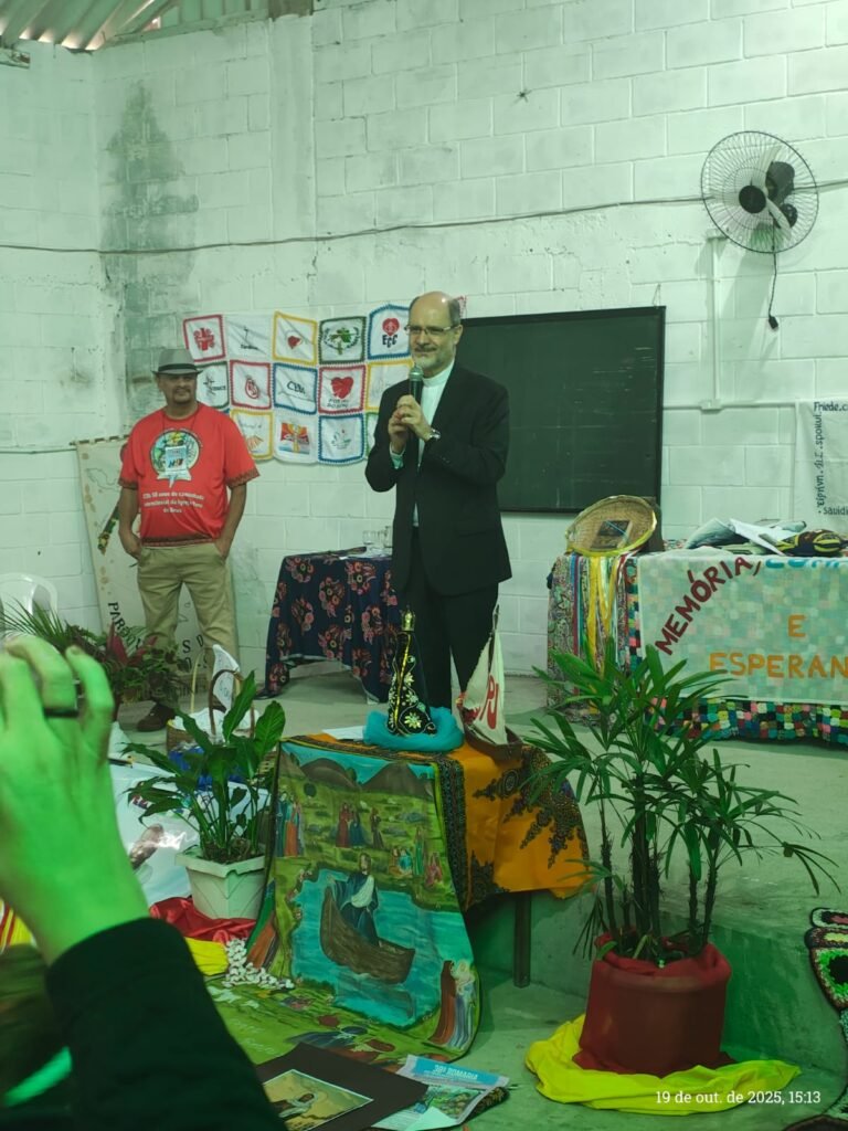 A memória dos mártires foi recordada com reverência, unindo as dores do povo à caminhada sinodal da Igreja. A leitura do Salmo 86 e do Magnificat (Lc 1,46-56) inspirou os participantes a rezar pela construção de um mundo novo, alicerçado na justiça e na partilha.