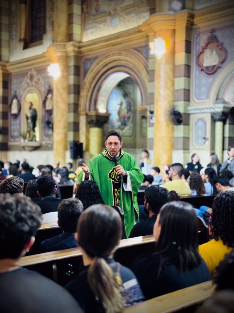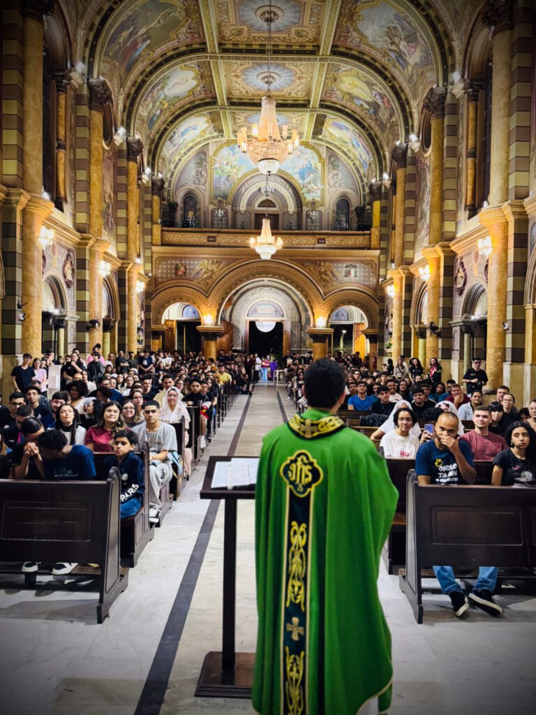 A juventude da Diocese de Santo André viveu uma noite inteira de oração, música e formação, na Vigília Diocesana do Setor Juventude, realizada na Catedral Nossa Senhora do Carmo, entre as 22h do dia 25 e as 6h do dia 26 de outubro. Em clima de unidade, os jovens se colocaram diante do Senhor para escutar, adorar e partilhar a fé. A Missa foi presidida por Padre Bruno Biazutti, assessor eclesiástico do Setor Juventude, que encorajou os presentes a manterem o coração aberto à graça e a transformar cada serviço nas comunidades em sinal concreto de amor a Cristo.