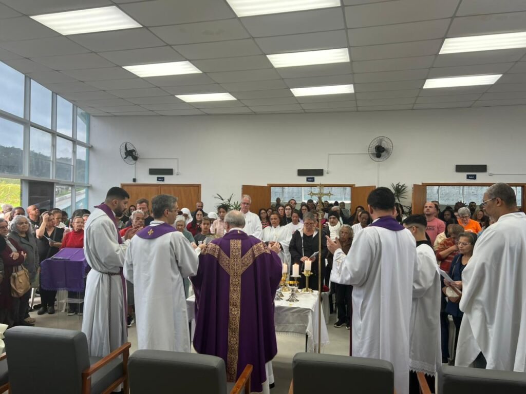 Em Rio Grande da Serra, a homilia retomou as mesmas linhas de consolo e propósito. “Quem foi batizado já traz no coração a semente da vida eterna; aqui começamos o que Deus consumará.” Indicou o critério do juízo: “O último dia é a hora em que partimos desta terra, e o Senhor perguntará sobre o amor vivido.” E chamou ao concreto: “A paz não é uma ideia distante; começa na tua casa, no teu coração, nos teus relacionamentos. Perdoar, reconciliar, recomeçar, eis o caminho.”