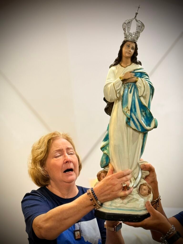 Após a adoração, a programação prosseguiu com um momento mariano conduzido por Elaine Guedes, com palavras voltadas a fortalecer o coração das mães, pedindo a intercessão da Virgem Imaculada sobre as famílias.
