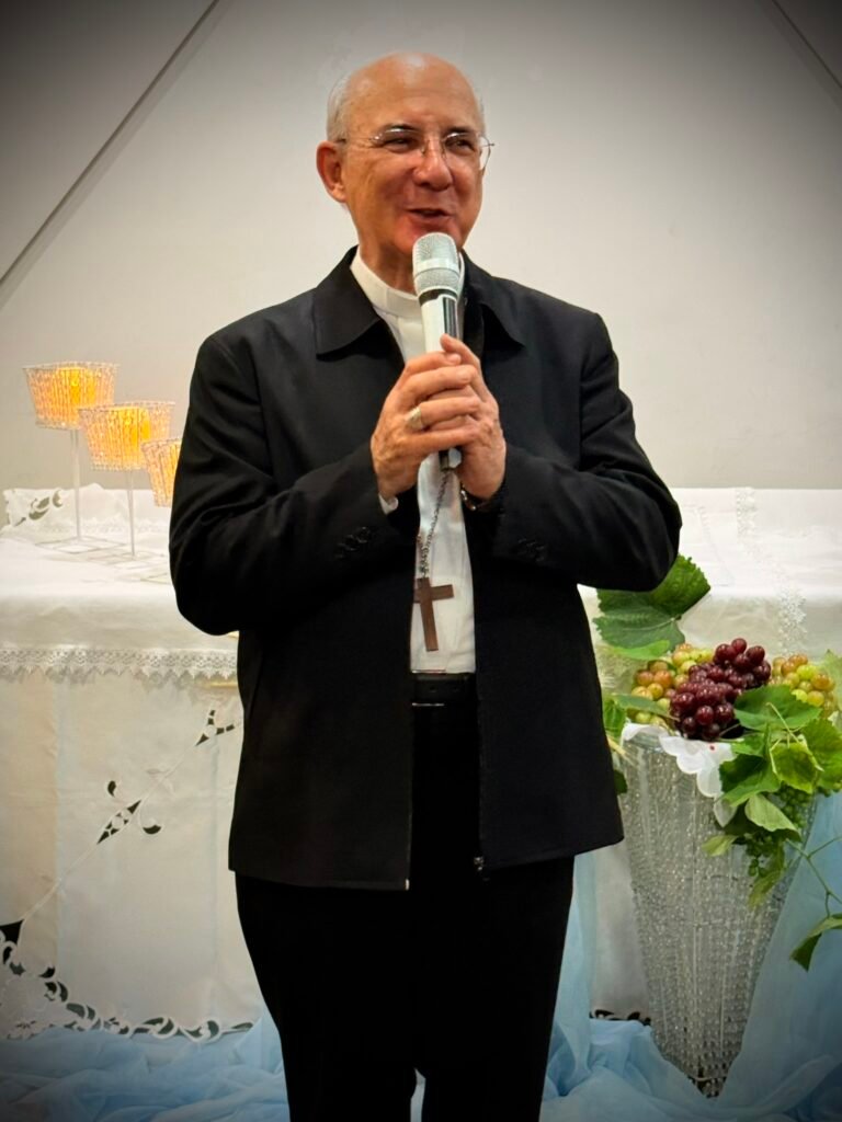 Logo no início, Dom Pedro Carlos Cipollini dirigiu-se às mães, afirmou sentir alegria ao ver mulheres reunidas em oração e situou esse gesto no contexto social do país, pedindo que a intercessão das mães também alcance a superação da violência e da discriminação contra a mulher. Dom Pedro recordou realidades dolorosas como o feminicídio e os assassinatos de mulheres, relacionando a cultura do machismo à necessidade de conversão pessoal e comunitária. Ao falar sobre a força da oração, explicou que a tradição espiritual a chama de onipotência suplicante, porque, ao rezar, o coração se abre para Deus habitar e agir. Antes de se despedir para outro compromisso pastoral, convidou todos a rezarem juntos uma Salve-Rainha, concedeu a bênção e seguiu para a Paróquia São Pedro e São Paulo, onde encontraria os jovens para o Sacramento da Confirmação.