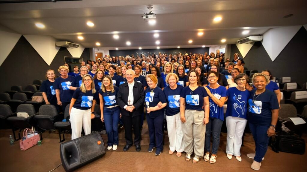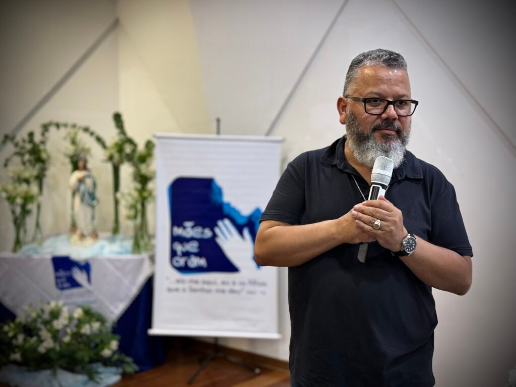 Na sequência, Padre Fernando Valladares conduziu a formação, retomando o tema do encontro a partir da centralidade da Eucaristia. Ele apresentou às mães uma imagem forte: quem recebe a Eucaristia é chamado a tornar-se Eucaristia na vida de alguém, alimento, presença e cuidado. e lembrou que isso ganha um sentido ainda mais concreto na vocação materna. Ao acolher o grupo, também alertou para os riscos de se deixar conduzir pelos “venenos do tempo”, citando o crescimento de discursos de ódio e desejos de destruição entre pessoas, especialmente em períodos de tensão social. Para ele, a identidade de uma mãe que ora começa por uma mudança de vida e por uma fidelidade cotidiana, sem depender de aprovação alheia.