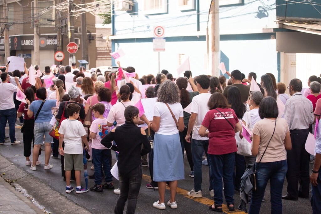 Mais do que um percurso pelas ruas centrais de Santo André, a caminhada se tornou um testemunho público de que a Igreja não deseja se calar diante de uma realidade que fere tantas vidas, famílias e comunidades. Em oração, com a presença de seu bispo, de padres, diáconos e de tantas participantes, a Diocese reafirmou que defender a vida das mulheres é compromisso concreto do Evangelho.