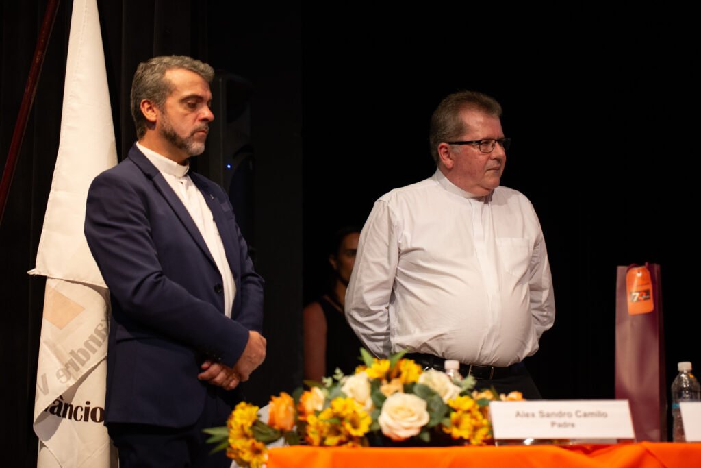Outro trecho importante da noite foi a homenagem prestada a colaboradores e ex-colaboradores que ajudaram a construir a identidade do colégio. A cerimônia também recordou nomes fundamentais dessa história, entre eles Monsenhor Alexandre Venâncio Arminas, o Cônego Belisário Elias de Souza, Silva Lopes de Siqueira e o Padre Roberto Alves Marangoni, o Padre Beto.