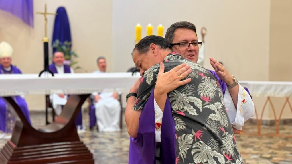 Encerrando sua fala, recorreu à conhecida imagem das estrelas-do-mar devolvidas ao oceano para ilustrar o sentido da missão evangelizadora. Ao comparar-se ao nativo da história, convidou a comunidade a caminhar com ele no cuidado concreto com as pessoas. “Eu sou esse nativo. Vocês me ajudem. Vamos fazer a diferença em Cristo na vida das pessoas”, afirmou. E concluiu com um apelo direto à participação da comunidade: “Caminhemos juntos”.