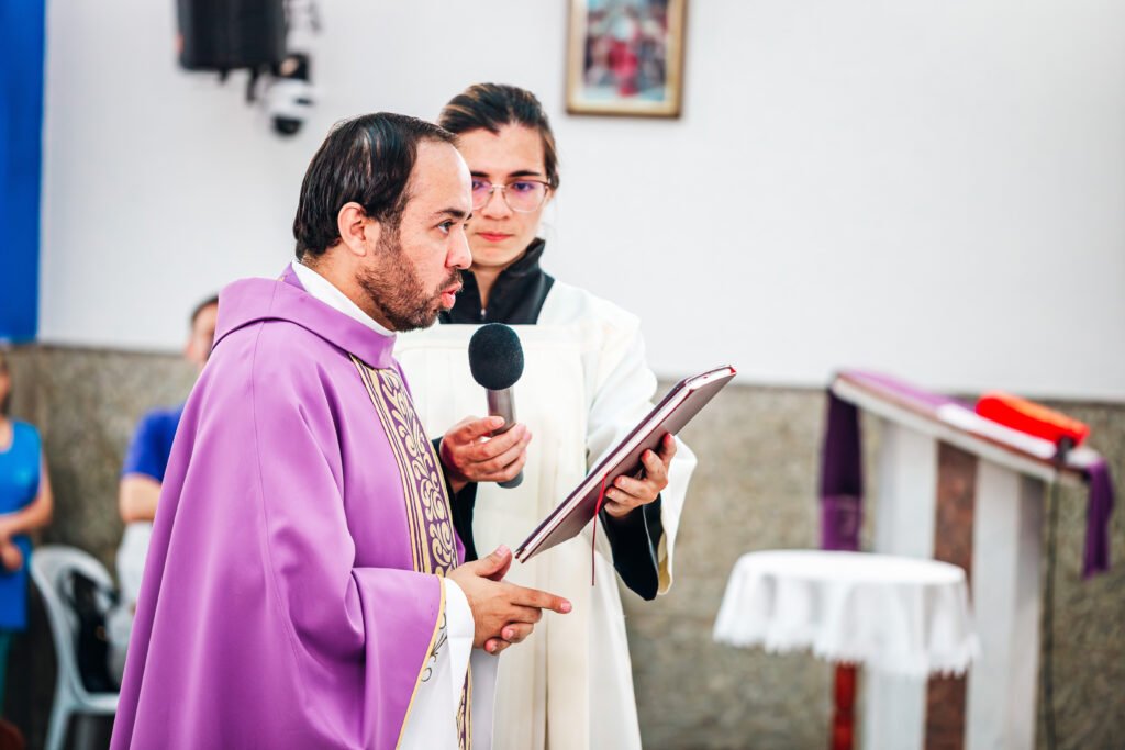 Ao iniciar sua fala, Padre Marcos chamou para junto de si o Padre José Rocha, que assumirá sua paróquia anterior, e o Padre Vanderlei Nunes, num gesto de fraternidade sacerdotal. Partindo do Evangelho proclamado, recordou que Cristo é a verdadeira água viva e que os padres são chamados a ser instrumentos para que essa graça chegue ao povo. Disse à comunidade que, apesar das mudanças entre paróquias e das características próprias de cada sacerdote, “o Cristo é o mesmo” e a graça de Deus continua sendo oferecida ao seu povo.