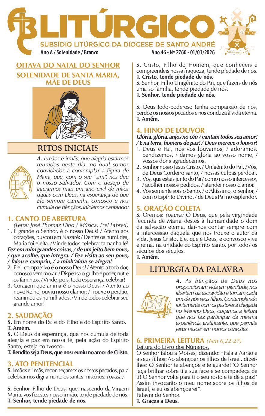 O folheto litúrgico diocesano, criado em 1980, tem a missão não apenas de ser um rico subsídio para os cristãos participarem do ápice da sua fé, a santa missa, mas também promover a unidade dos católicos nas celebrações dominicais da Diocese de Santo André.