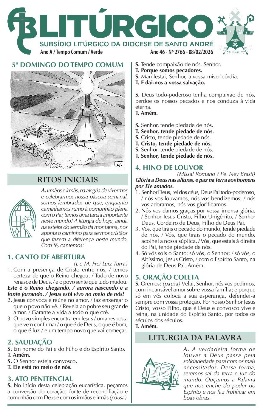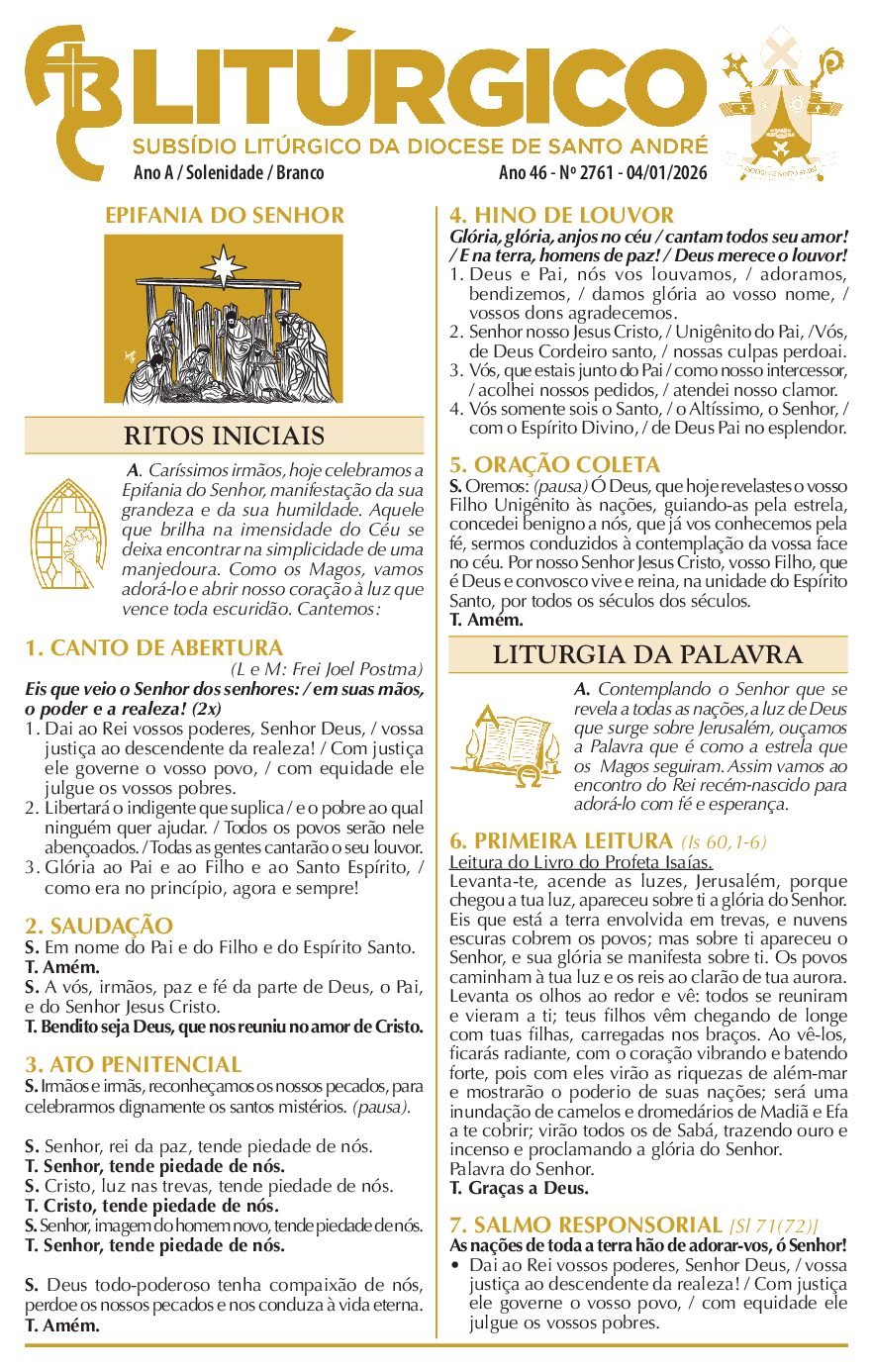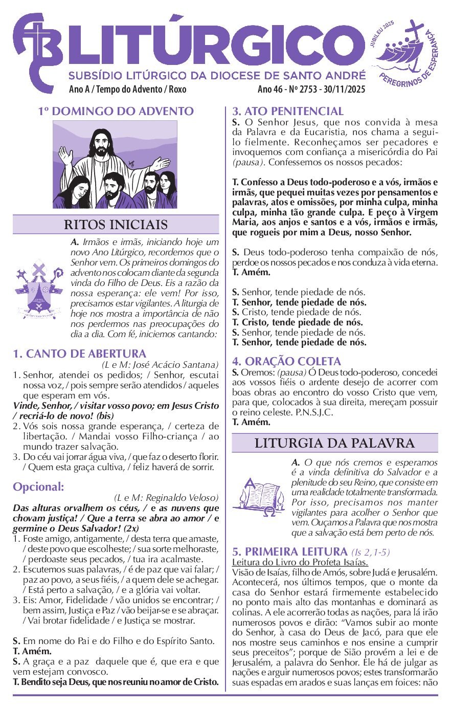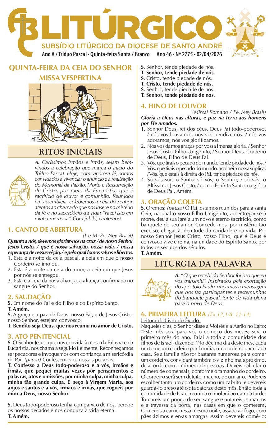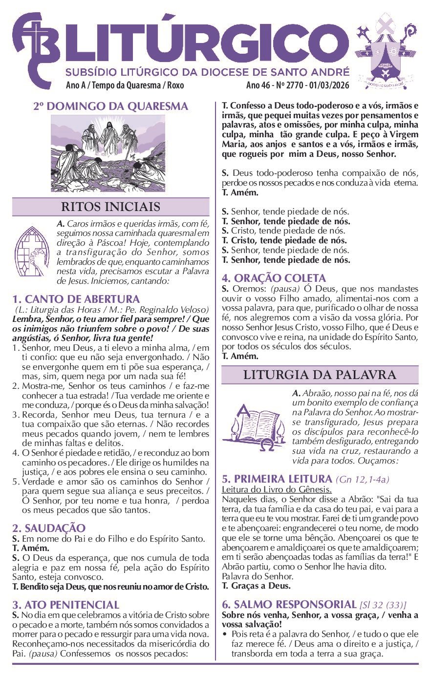 O folheto litúrgico diocesano, criado em 1980, tem a missão não apenas de ser um rico subsídio para os cristãos participarem do ápice da sua fé, a santa missa, mas também promover a unidade dos católicos nas celebrações dominicais da Diocese de Santo André.
