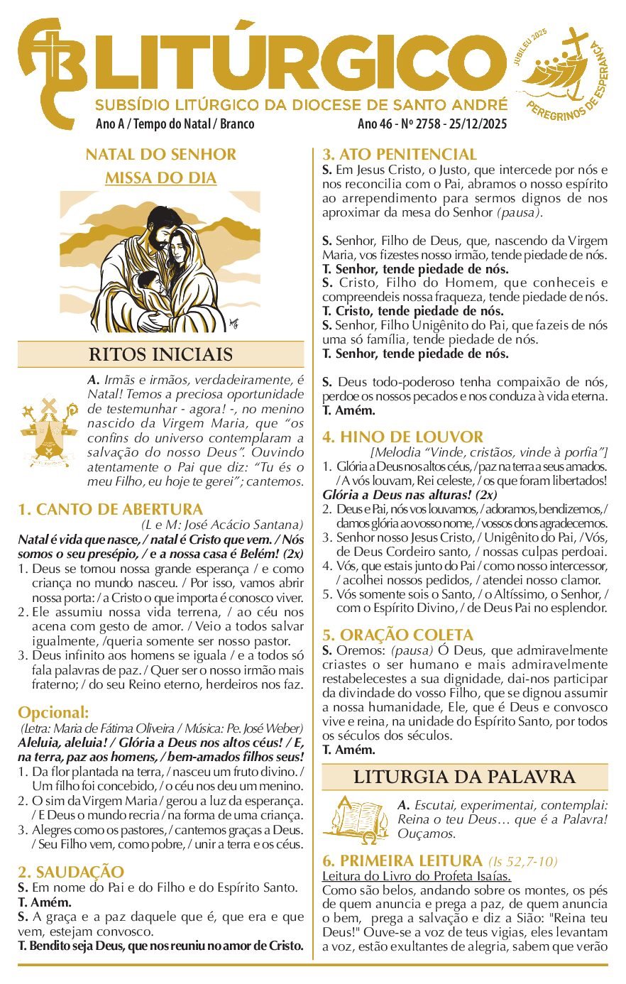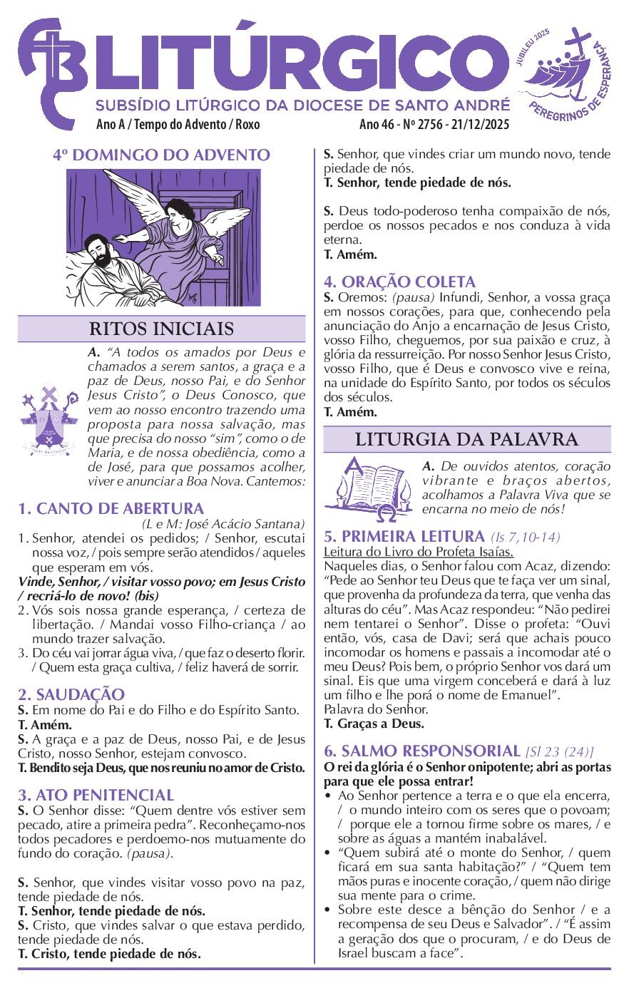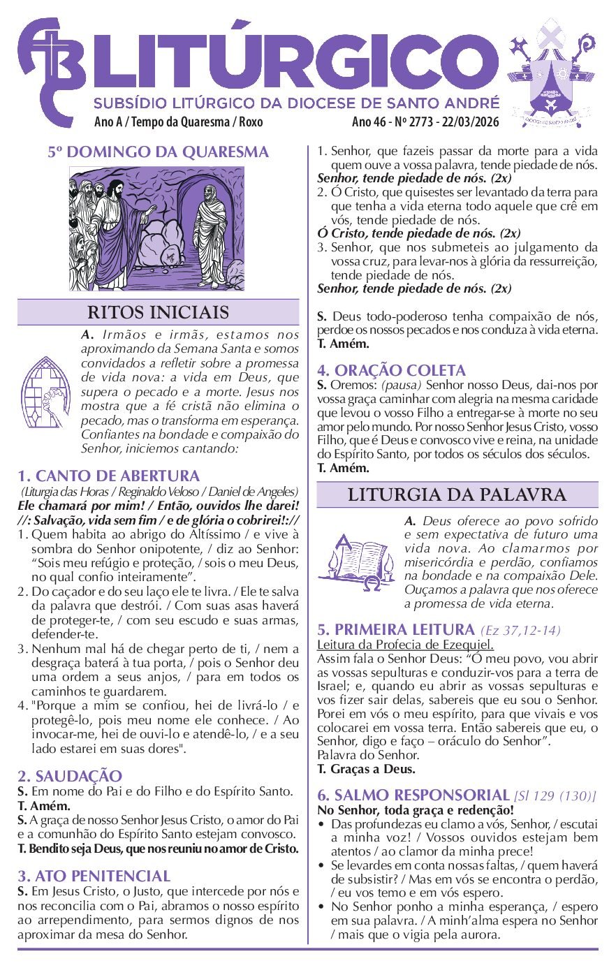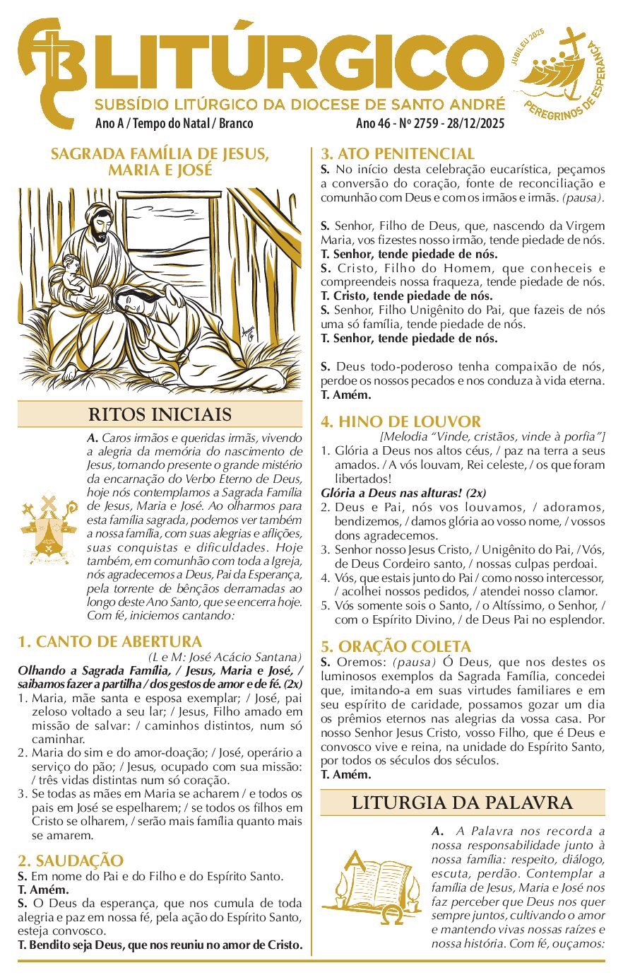 O folheto litúrgico diocesano, criado em 1980, tem a missão não apenas de ser um rico subsídio para os cristãos participarem do ápice da sua fé, a santa missa, mas também promover a unidade dos católicos nas celebrações dominicais da Diocese de Santo André.