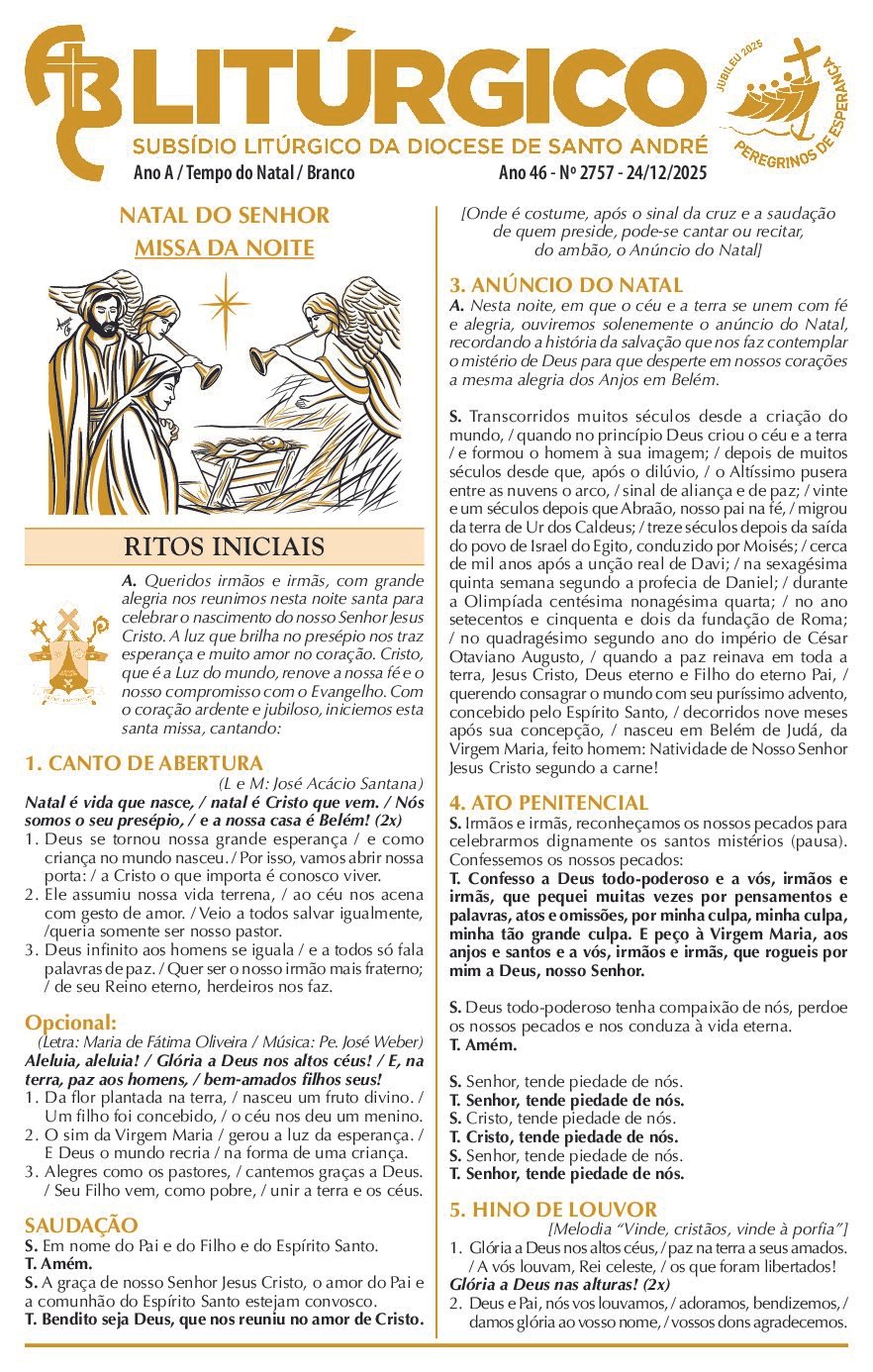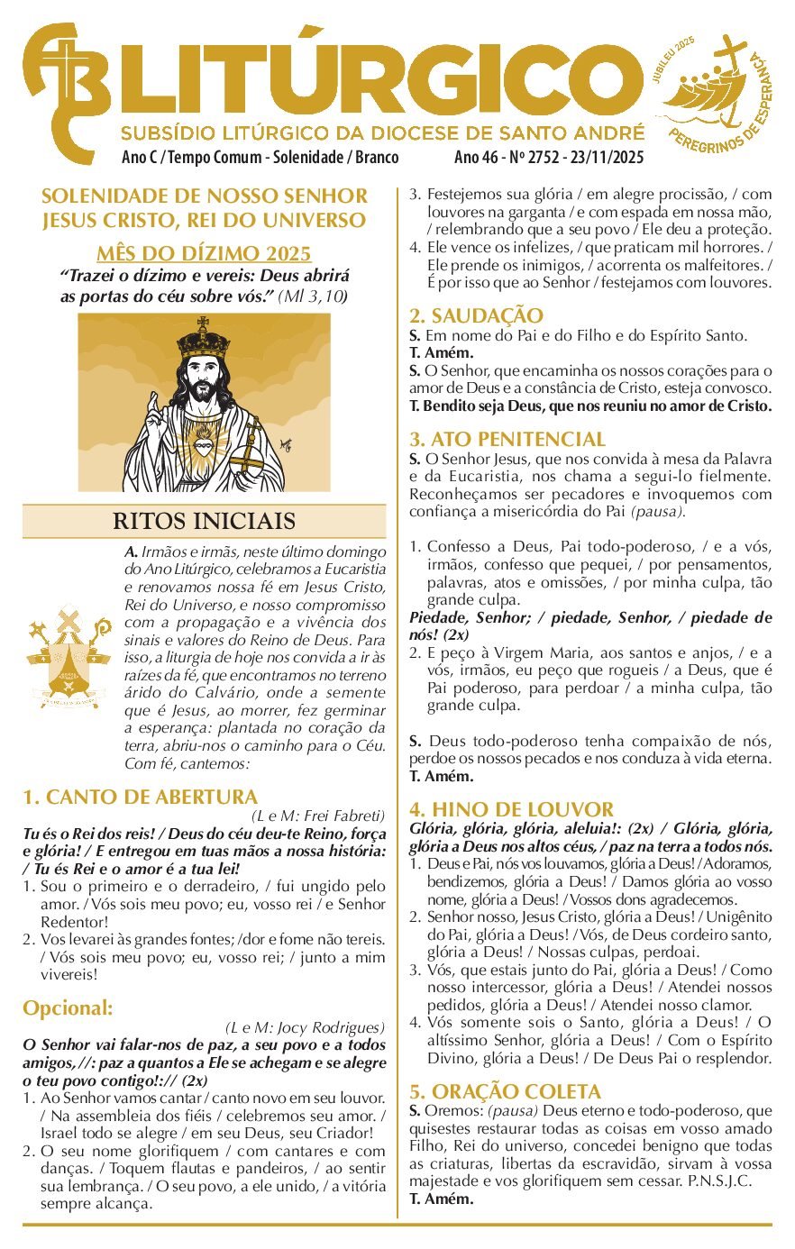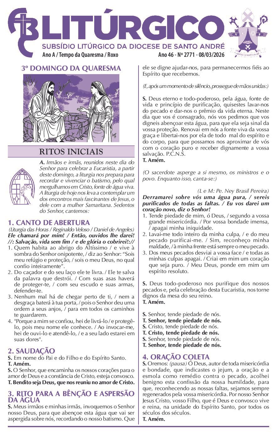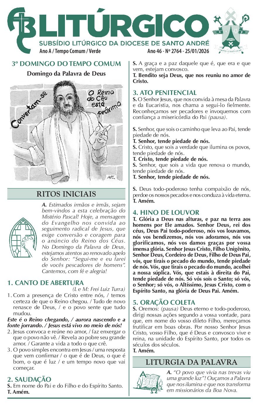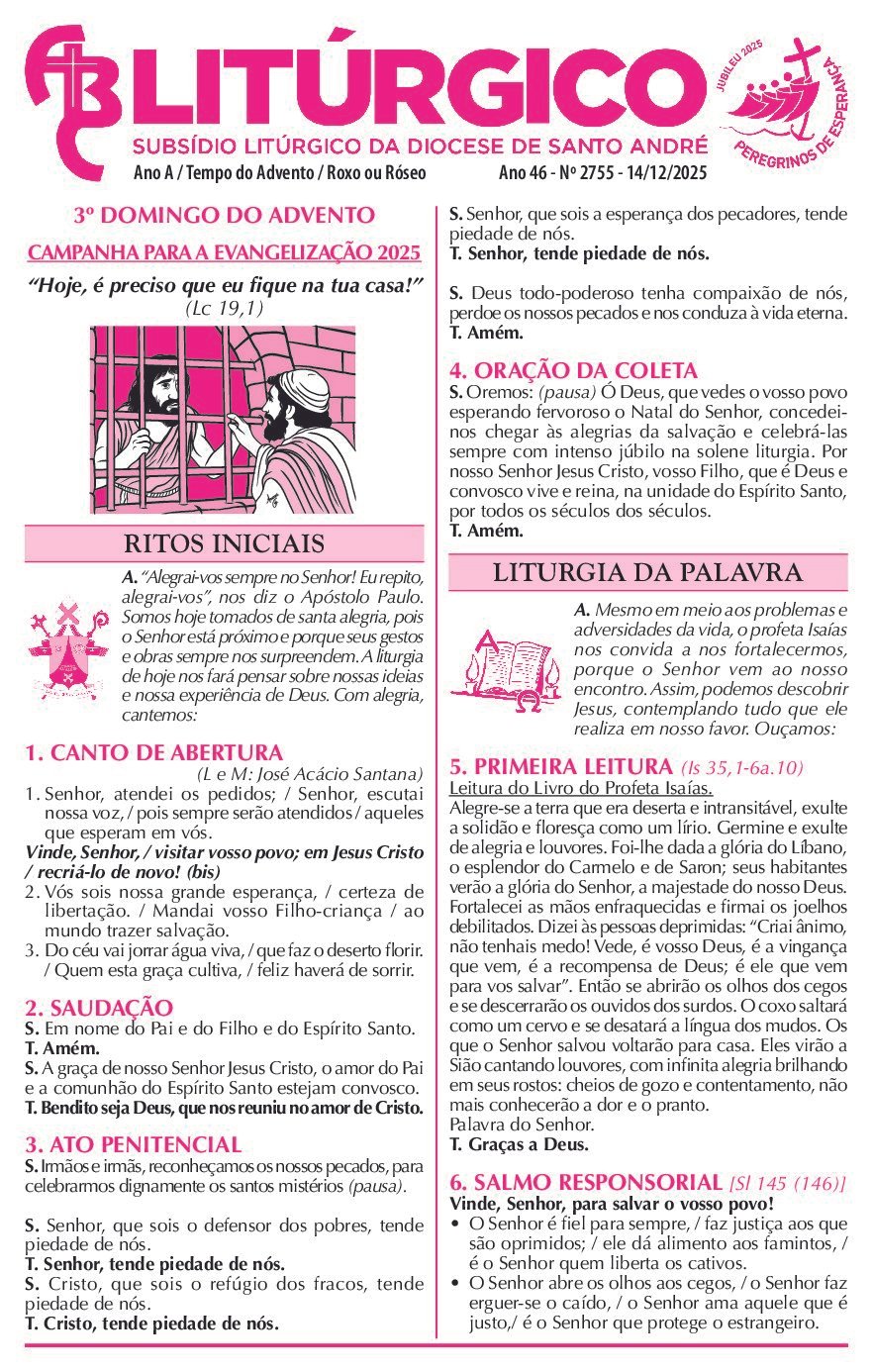 O folheto litúrgico diocesano, criado em 1980, tem a missão não apenas de ser um rico subsídio para os cristãos participarem do ápice da sua fé, a santa missa, mas também promover a unidade dos católicos nas celebrações dominicais da Diocese de Santo André.